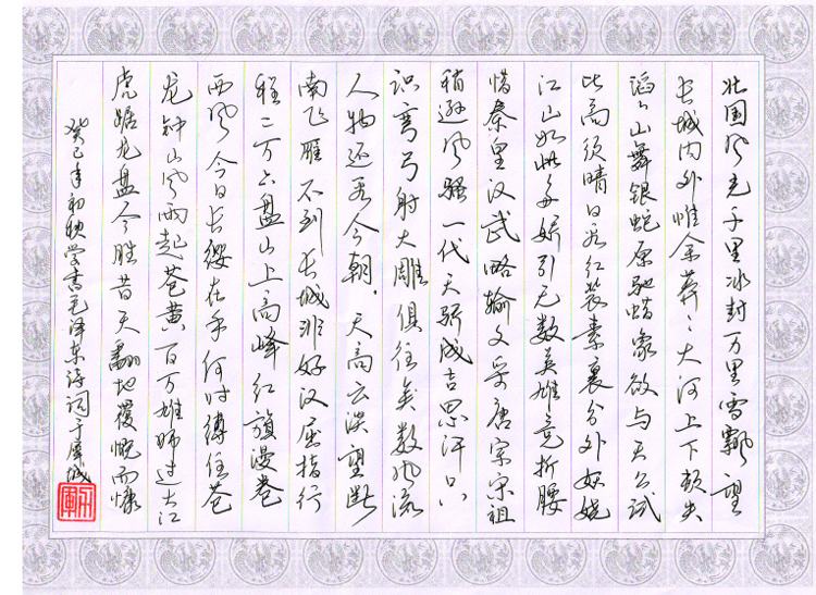 硬筆書法一等獎(jiǎng):行書 《沁園春.雪》(作者:肖力軍)