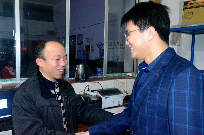 “同志們,辛苦了!” “同志們,我給大家拜年了!”隨即踏上6:00時(shí)發(fā)往長沙的班車上,送上象征吉祥平安的慰問紅包,送上新春的祝福,囑咐其注意行車安全,并目送班車徐徐駛出車站。接著,董事長來到汽車中心站,先后向車站票房工作人員、三品檢查人員、服務(wù)班工作人員、GPS監(jiān)控人員和車輛安檢人員拜年,并向工作人員噓寒問暖。當(dāng)來到GPS監(jiān)控中心,董事長與車站和監(jiān)控工作人員親切交流,向其了解春節(jié)期間車輛運(yùn)行情況,并囑咐監(jiān)控人員一定要積極負(fù)責(zé),要充分運(yùn)用先進(jìn)的高科技手段,將車輛動態(tài)監(jiān)控工作認(rèn)真落實(shí)到位,將隱患消滅在萌芽狀態(tài)。再接著,董事長相繼來到汽車北站、江南汽車站和汽車南站慰問一線員工。每到一處,都洋溢著春天的喜悅。尤其是在汽車南站,董事長與員工們一道細(xì)細(xì)品味著員工們親手泡制的姜糖茶,與員工們一道暢談企業(yè)的發(fā)展大計(jì),與員工們一道憧憬著企業(yè)的美好未來,春天的歡樂氣氛更加濃烈